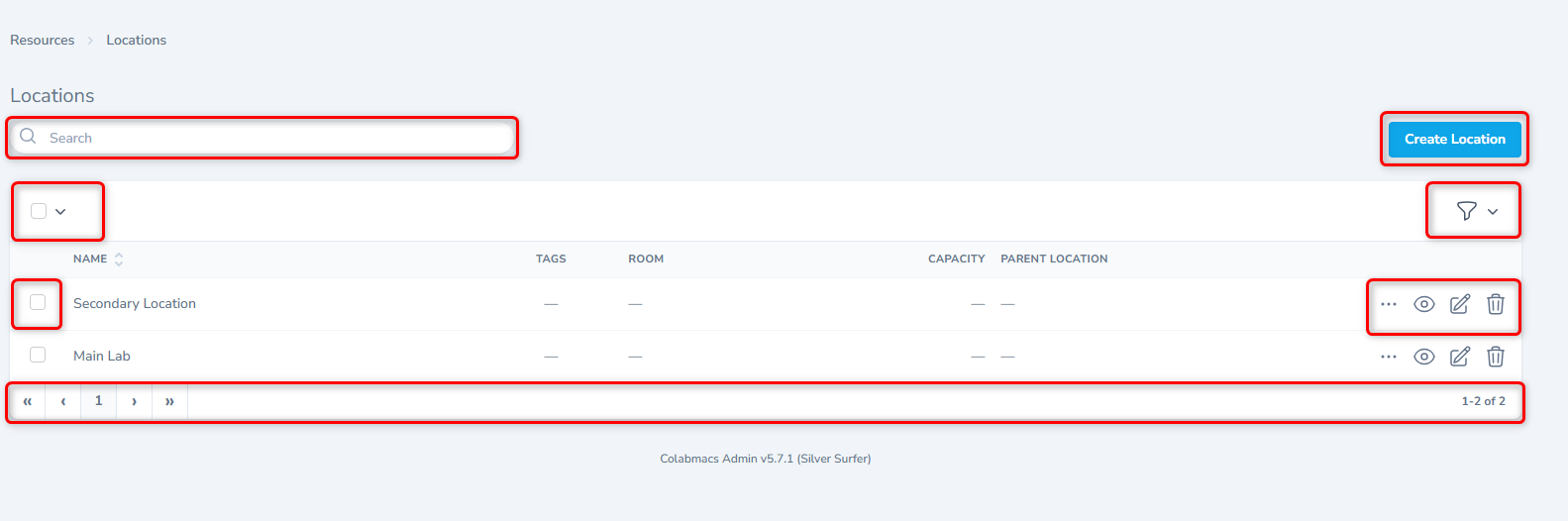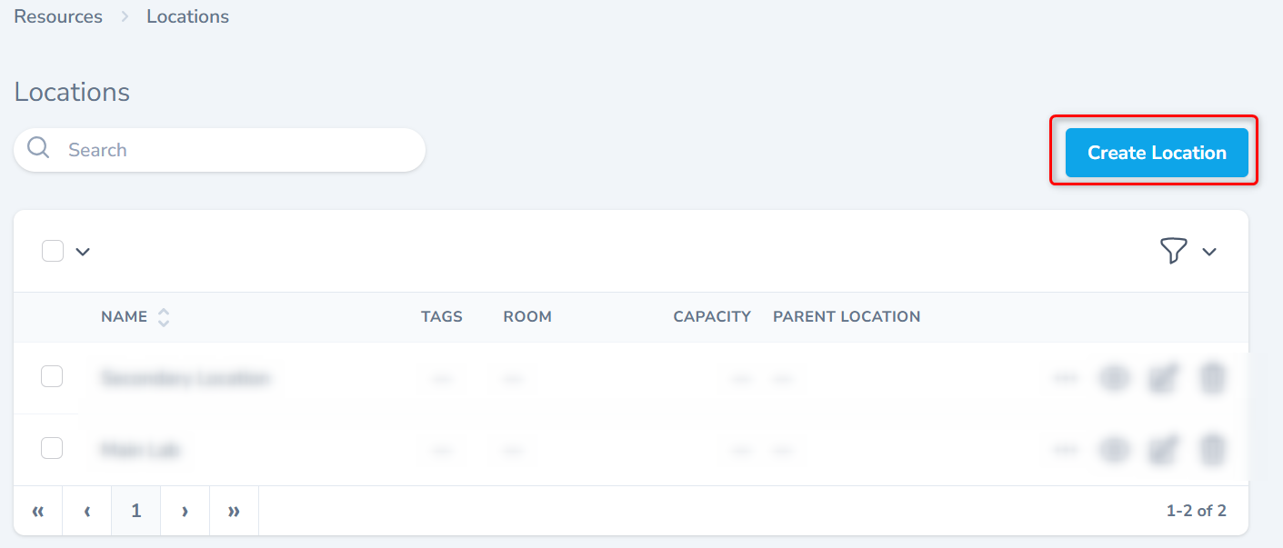 From the listing screen, click the Create Location button.