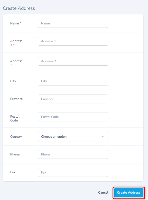 - Enter appropriate details and click the Create Address button to create a new record.