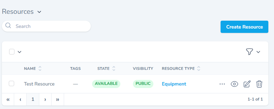 - The resources section lists all the available resources.