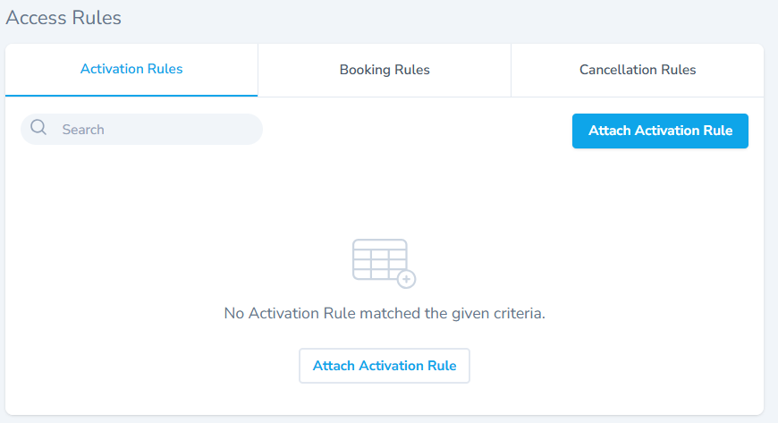 - The overview section has three tabs, Activation Rules tab, Booking Rules tab, Cancellation tab.