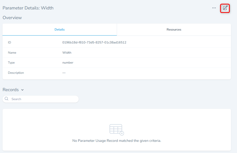 - To view the resources with the specific Parameter, click the Resources tab.
