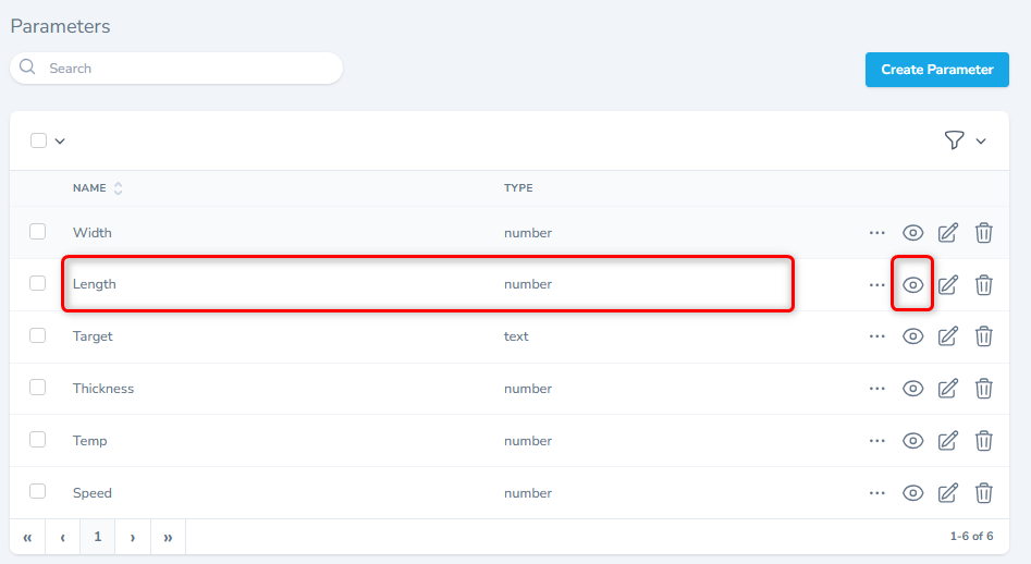 From the listing screen, click the Create Parameters button.