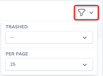 You can customize the number of records displayed per page to suit your viewing preferences. Additionally, colabmacs provides options to filter records based on their status: "With Trashed" shows active and soft-deleted items, "Only Trashed" isolates deleted entries, and selecting "All" displays every record.