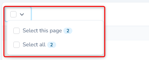 !!! info "Info" - The number against the "Select this page" or "Select all" shows how many records are selected by each option.