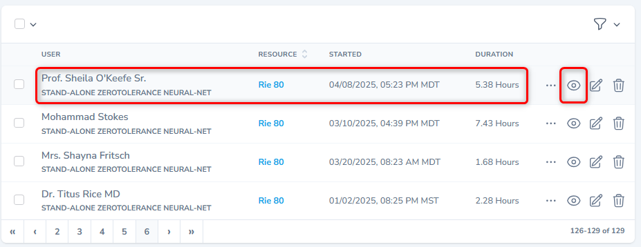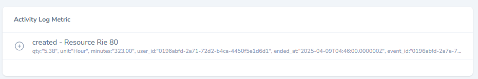 - The section displays all activities / actions performed on the selected resource.
